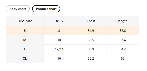 Size UK Chest Length