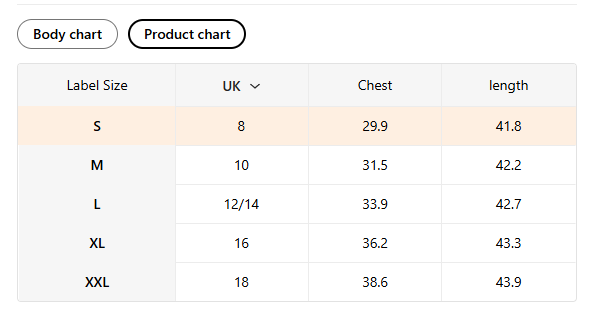 Size UK Chest Length