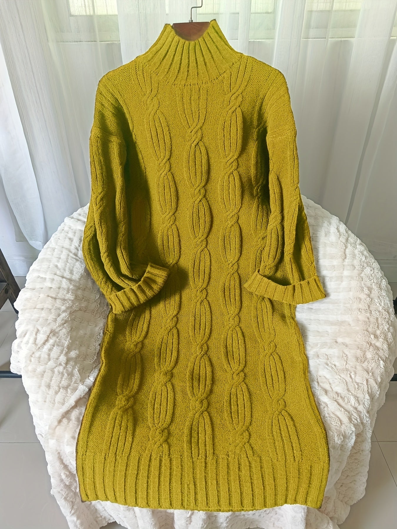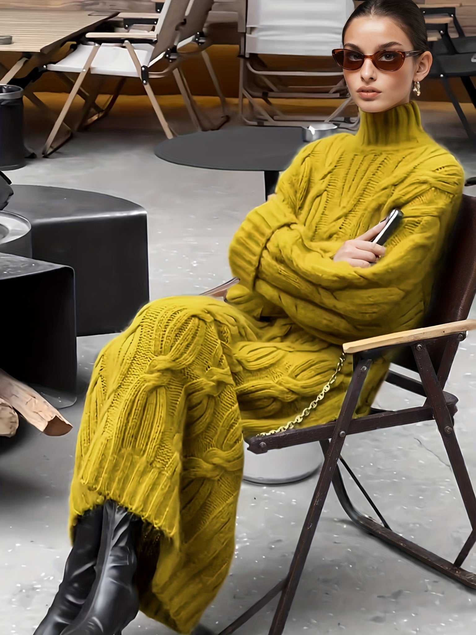 This Women’s Elegant Vintage Maxi Dress blends timeless style with modern comfort. Crafted from a soft knitted blend of nylon, polyester, and acrylic, the dress features a high twisted rope neckline, drop shoulders, and long sleeves for a relaxed, elegant fit.