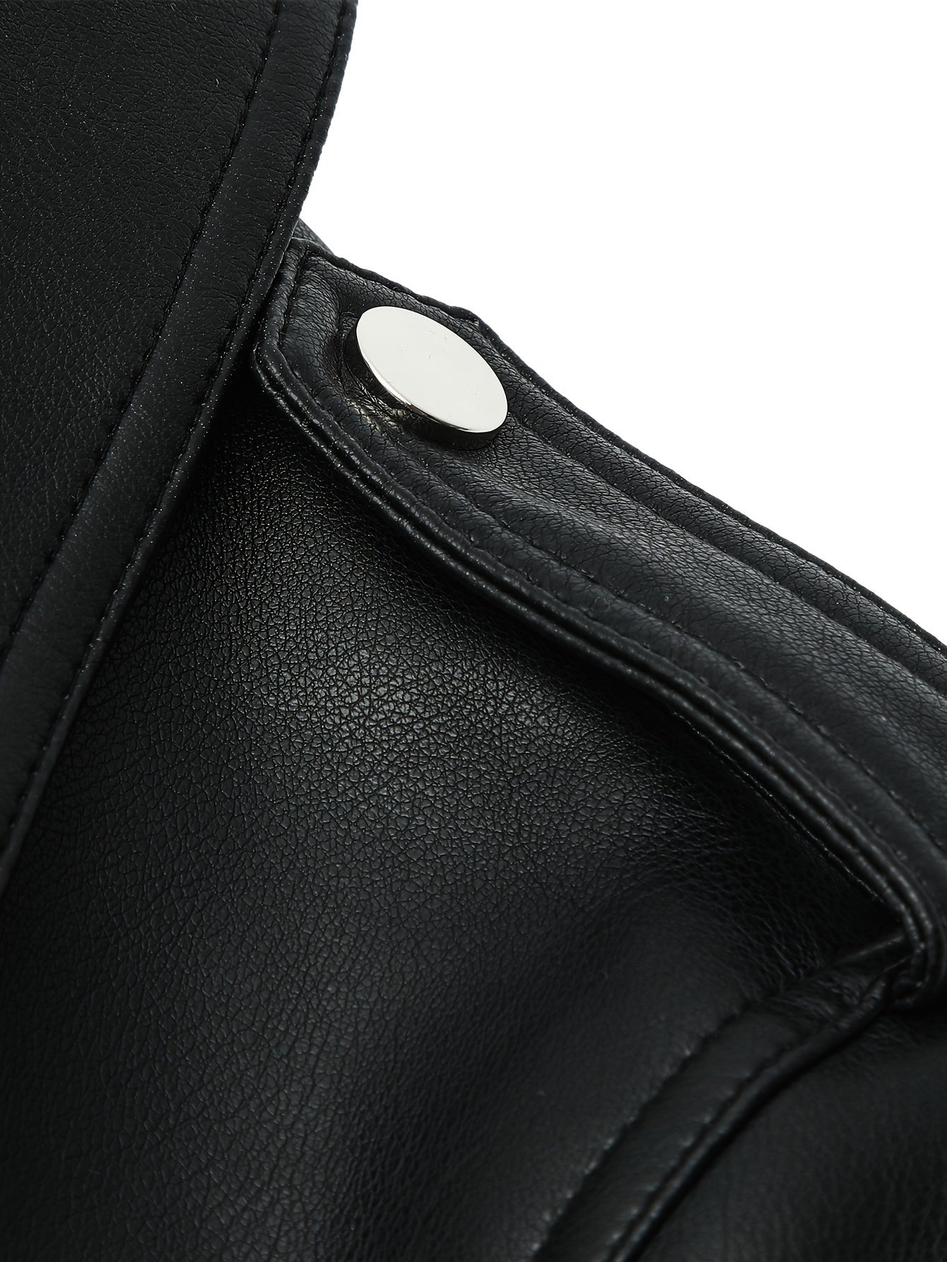 Women’s Genuine Leather Warm Short Jacket – Stylish Black Zip-Up Coat with Fleece Lining, Fall & Winter Casual Wear